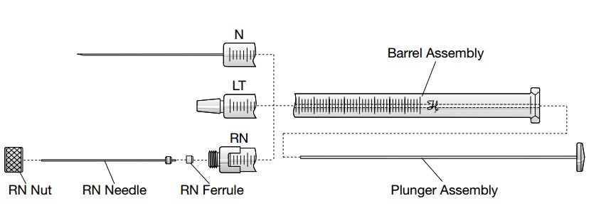 Шприцы данной серии работают с жидкими средами, имеет простую конструкцию, идеально подходит для органических растворов, не склонных к склеиванию и осаждению. Серия комплектуется несколькими типами наконечников и игл. Имеется следующий перечень доступных объемов: 5, 10, 25, 50, 100, 250, 500мкл .